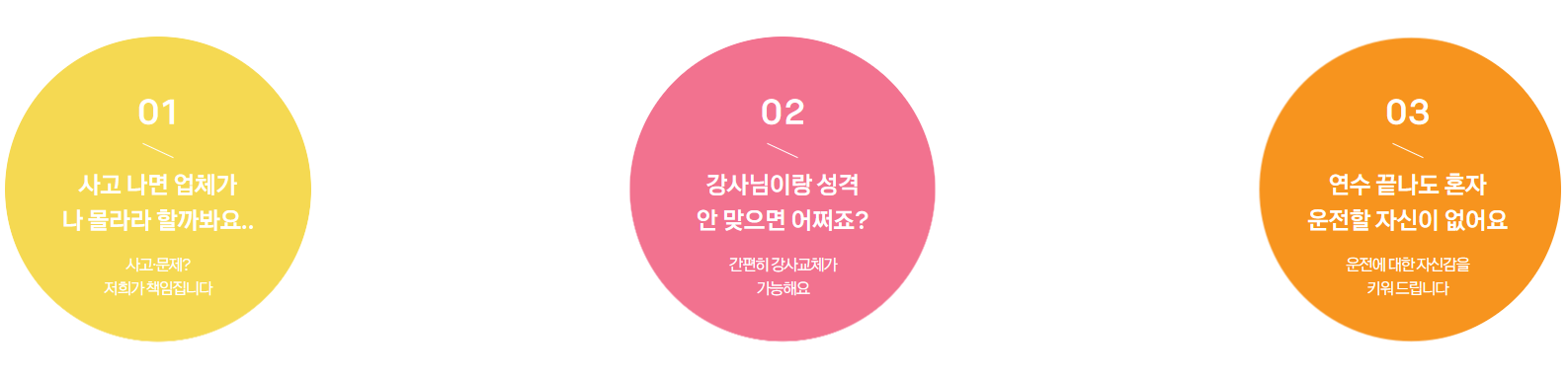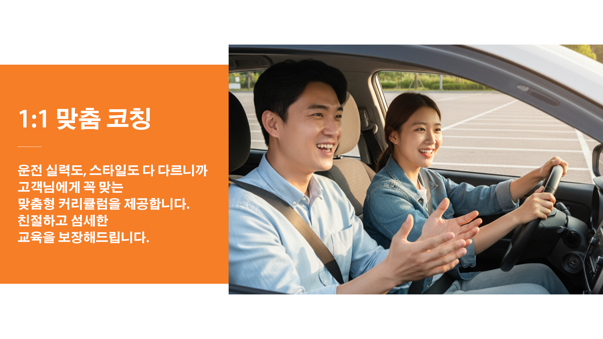 중랑운전연수 Q&A | 초보를부탁해 Q1. 중랑운전연수는 어떤 방식으로 진행되나요? 1:1 맞춤 코칭으로 생활도로, 교차로, 차로 변경, 주차까지 단계별로 실전 연습합니다. 중랑구 주요 구간(상봉·면목·묵동)에서 실제 도로 주행 중심으로 이루어집니다. Q2. 초보 운전자도 바로 실도로 연수가 가능한가요? 가능합니다. 교통량이 적은 시간대·구간에서 시작해, 코치 동승하에 점차 복잡한 구간으로 확대합니다. Q3. 자차로 연수를 받고 싶은데 가능한가요? 네. 보조브레이크와 안전장치가 장착된 차량으로 진행하며, 자차 사용 시 안전 점검(타이어·연료·브레이크)을 권장합니다. Q4. 연수 코스는 어떻게 정해지나요? 운전자의 숙련도에 따라 다릅니다. 처음엔 면목·상봉 생활도로에서 시작하고, 이후 중랑교나 장안교 등 주요 교차로로 이동합니다. Q5. 주차가 너무 어려운데 집중적으로 배울 수 있을까요? 물론입니다. 사이드미러 각도·진입각·기준선을 단계적으로 교정하며, 평행·T자·후진주차를 반복 훈련합니다. Q6. 연수 시간과 횟수는 어떻게 구성되나요? 기본 2시간 단위, 총 3~6회 코스로 구성됩니다. 난이도와 목표에 따라 횟수를 조정할 수 있습니다. Q7. 연수 전 어떤 준비를 하면 좋을까요? 운전면허증, 편한 복장, 운동화, 선글라스만 있으면 충분합니다. 자차 연수 시 차량 상태를 사전에 점검해 주세요. Q8. 중랑운전연수 후 어떤 효과를 기대할 수 있나요? 생활도로 주행 자신감 향상, 차로 변경·주차 숙련도 강화, 위험예측 중심의 안전 운전 습관 형성에 도움이 됩니다. 초보를부탁해 Q&A 전용 · 오렌지톤(#f97316) · 중랑운전연수 · FAQ8 JSON-LD 포함